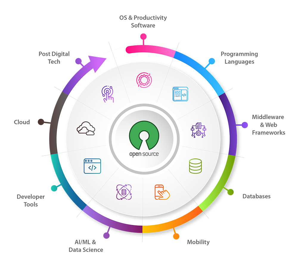 Open source technologies are revolutionizing the development and deployment of software applications. Enterprises are realizing the importance of adopting open source among their key strategies and open source software is now being used by major organizations across industry verticals. The major areas where it is used are Website development, Cloud management tools, Security, Big Data & Analytics, and Databases.
