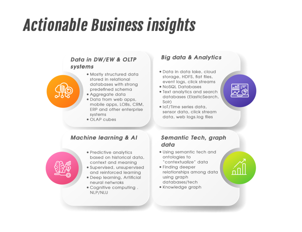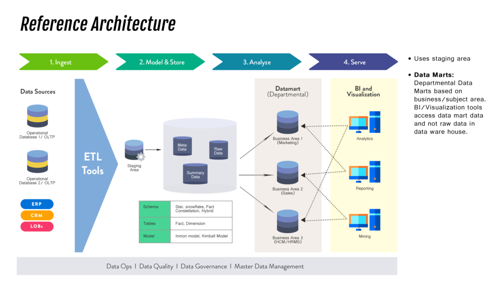 At Optigrise, we use a reference architecture based approach to map client needs to our proven DW/BI reference architecture. Our Big data & Analytics services include Data & Insight consulting, DW/BI architecture, Data warehouse design/build, Data integration, cloud migration service, visualization and reporting, and DataOps. Our approach to business analytics is unified and balanced while bringing in the DevOps and Agile principles to data. Whether you are using traditional on premise data warehouses or modern cloud-hosted data warehouses, Optigrise can help your organization’s DW/BI capabilities align with the business’s strategies and requirements.